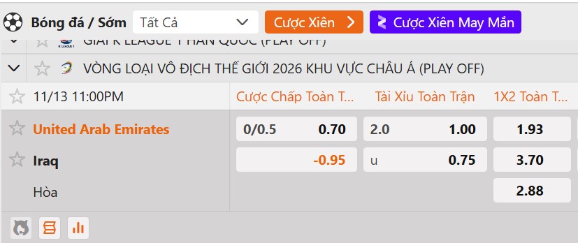 Tuy nhiên, xét trên yếu tố phong độ hiện tại và lợi thế được ra sân trên mặt cỏ quen thuộc của mình, UAE vẫn được đánh giá nhỉnh hơn đôi chút. Trận đấu nhiều khả năng sẽ diễn ra với thế trận chặt chẽ, nơi UAE kiểm soát bóng nhiều hơn nhưng gặp khó trong việc xuyên phá hàng thủ đối phương. Iraq có thể tiếp tục phát huy điểm mạnh phòng ngự và chờ đợi sai lầm để phản công. Với tình hình hiện tại, khả năng cao trận đấu sẽ khép lại với tỷ số hòa hoặc chỉ có tối đa hai bàn thắng được ghi một kết quả phản ánh đúng sự cân bằng giữa hai đội bóng có lối chơi trái ngược nhưng đều rất bản lĩnh. Chọn cửa dưới của Iraq khi sẽ được đối thủ chấp kèo là 1/4 trái và xỉu 2 trái cho kèo châu Á.