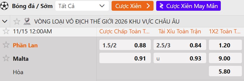 Ở trận lượt đi trên sân của Malta, Phần Lan đã giành chiến thắng tối thiểu 1-0. Đó cũng là lần thứ ba liên tiếp họ đánh bại đối thủ này, khẳng định sự vượt trội về đẳng cấp và chất lượng đội hình. Khi trở lại sân nhà, Phần Lan càng thêm đáng tin hơn. Dù đôi lúc họ vẫn có thể sảy chân trước những đối thủ bị đánh giá thấp hơn, nhưng trong 5 trận sân nhà gần nhất mà họ được xếp ở cửa trên với mức chấp từ -1 trở lên, đội bóng Bắc Âu đã thắng tới 4 trận con số đủ cho thấy khả năng tận dụng lợi thế sân bãi của họ đáng tin cậy ra sao. Trong khi đó, Malta vẫn thể hiện hình ảnh của một đội bóng yếu toàn diện. Tại vòng loại World Cup 2026, họ mới chỉ có vỏn vẹn 2 điểm, đều giành được trước Lithuania – đối thủ gần như cùng đẳng cấp. Ở 4 trận còn lại gặp các đội mạnh hơn trong bảng, Malta thua cả 4, không ghi nổi bàn thắng danh dự nào. Điều này phản ánh đúng thực lực của đội bóng nhỏ bé đến từ Địa Trung Hải. Mỗi khi phải thi đấu xa nhà, Malta gần như chỉ có thể cầm hòa được những đối thủ yếu như họ, còn gặp những đội bóng ở tầm trung trở lên như Phần Lan, khả năng gây bất ngờ gần như bằng không. Trong các trận đấu chính thức, họ thường thua cách biệt trên một bàn, minh chứng rõ ràng cho sự chênh lệch đẳng cấp. Vì vậy, việc tin tưởng Malta giành điểm trên đất Phần Lan lúc này là điều chỉ dành cho những ai quá mạo hiểm.