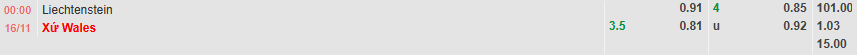 Tỷ lệ kèo Vòng loại World Cup 2026 Liechtenstein vs Wales