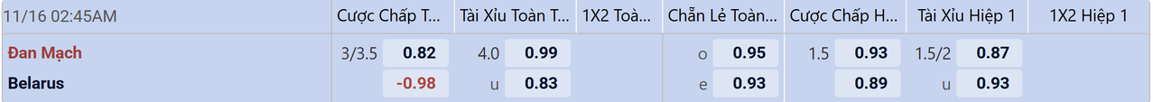 Hệ thống phòng ngự của Belarus luôn phải hoạt động hết công sức tại vòng loại World Cup 2026. Do thực lực quá kém cỏi, nên họ cũng chẳng còn cách nào ngoài chơi phòng ngự số đông nhằm cầm hoà mọi đối thủ trong bảng C. Tuy nhiên, thầy trò Carlos Ferrer lực bất tòng tâm với tổng cộng 15 lần thủng lưới chỉ sau 4 vòng. Trong đó, Đan Mạch đóng góp 6 bàn thua trong bảng thống kê của Belarus và kịch bản nổ tài chính là lựa chọn mà người chơi nên tin tưởng. Nếu áp dụng tỷ lệ 4.0 FT trong 6 trận chiến gần đây của các vị khách, có tới 4 lần ra sân của Belarus đem về niềm vui cho những nhà đầu tư chọn tài.