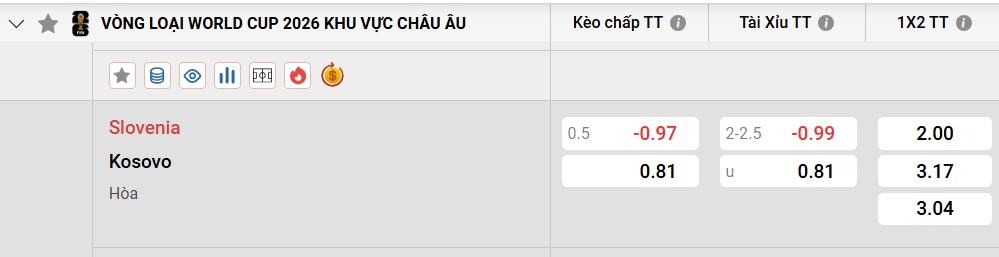 Tỷ lệ kèo Slovenia vs Kosovo