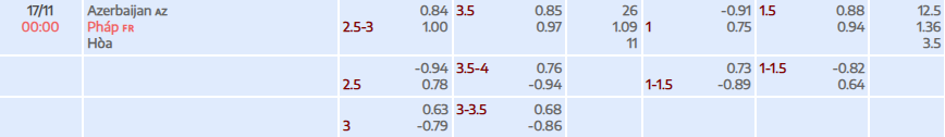 Tỷ lệ kèo Vòng loại World Cup 2026 Azerbaijan vs Pháp