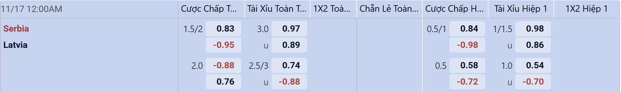 Trong hoàn cảnh Serbia sa sút, Latvia từng gây không ít khó dễ cho đoàn quân của HLV Paolo Nicolato ở lượt đi và chỉ gục ngã tối thiểu 0-1. Dựa trên mức kèo chấp 1.75 FT của nhà cái và Latvia nằm chiếu dưới, Serbia không còn là lựa chọn đáng tin cậy ở sân chơi handicap. Nên nhớ, đội bét bảng Andorra là đối thủ duy nhất mà thầy trò Veljko Paunovic có thể giành chiến thắng cách biệt từ 2 bàn trở lên ở vòng loại World Cup sau 7 vòng đấu. Với 3/4 trận thua kèo châu Á gần đây của đội chủ nhà, đầu tư vào Latvia vẫn có lợi hơn tin tưởng Serbia. Bởi lẽ, thầy trò Paolo Nicolato tuy nhất 3 thất bại tại bảng K, nhưng chỉ có 1 lần duy nhất họ để thua đậm bởi sức mạnh áp đảo của Tam Sư. Với 6/7 trận chỉ hoà và thua tối thiểu 1 bàn, người chơi nên chọn Latvia để gia tăng khả năng về bờ thành công.