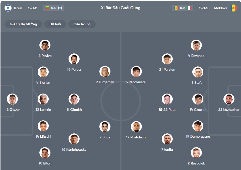 Nếu xét mức độ “bùng nổ bàn thắng”, có đến 6/11 trận có từ 4 bàn trở lên, trong khi chỉ 2 trận khan hiếm bàn thắng (dưới 2 bàn). Điều này cho thấy đặc trưng rất rõ: sân nhà của Israel thường là nơi diễn ra các trận đấu kịch tính và giàu bàn thắng, nhưng rủi ro bị đánh bại với cách biệt lớn cũng rất cao khi đối thủ sở hữu hàng công chất lượng. Hàng công của Israel ghi được 8 bàn trong 5 trận gần nhất, trong đó có 4 bàn từng ghi vào lưới Moldova ở trận lượt đi. Hàng thủ của họ cũng có hai trận giữ sạch lưới trong cùng giai đoạn, trong đó có một trận trước chính đối thủ Moldova.