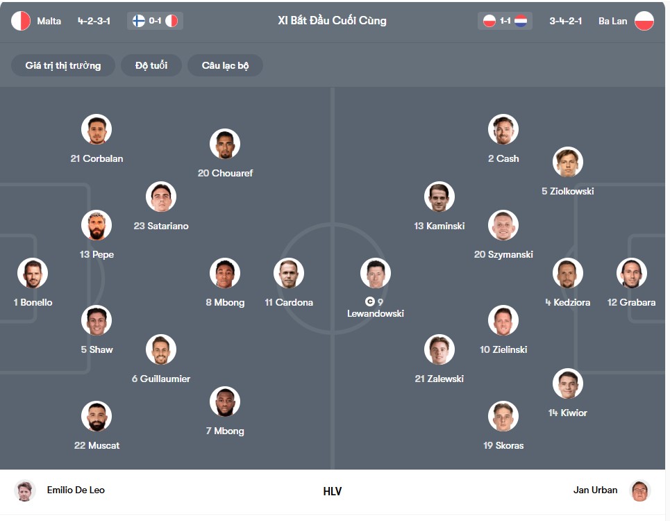Một điểm đáng chú ý là 7/11 trận sân khách gần nhất của Ba Lan khép lại với kịch bản ít bàn, chủ yếu là kết quả 1-0, 1-1 hoặc thậm chí 0-0. Điều này cho thấy các trận đấu của họ thường diễn ra kín kẽ, ít đột biến và hàng công khó tạo được sự áp đảo trước áp lực từ khán giả đối phương. Tổng thể, Ba Lan trên sân khách là đội có khả năng ghi bàn ở mức trung bình nhưng thủ không tốt, và phần lớn trận đấu mang xu hướng khan hiếm bàn thắng thay vì bùng nổ. Mặc dù có những tín hiệu tiến bộ, Malta vẫn từng dễ dàng nhận thất bại 0-2 trước Ba Lan hồi tháng 3. Đó đã là lần thứ năm liên tiếp họ để thua trước “Đại bàng trắng”, và trong chuỗi trận này, họ đã thủng lưới tổng cộng 15 bàn và không có nổi bất kỳ bàn danh dự nào. Trận hòa 1-1 trên sân nhà trước Hà Lan vừa qua khiến Ba Lan gần như không còn khả năng tranh chấp ngôi đầu bảng G với đội bóng áo cam, nhưng về mặt lý thuyết thì cơ hội của họ vẫn tồn tại. Cụ thể là trong trường hợp Hà Lan bị Lithuania đánh bại ở lượt trận cuối vòng loại World Cup 2026, Ba Lan nếu vượt qua Malta thì sẽ có cùng điểm số với đội bóng xứ sở hoa tulip. Nhưng điểm mấu chốt nằm ở chỗ Hà Lan đang có hiệu số +19, còn Ba Lan chỉ có +6, một khoảng cách khó lòng san lấp chỉ trong một trận đấu.
