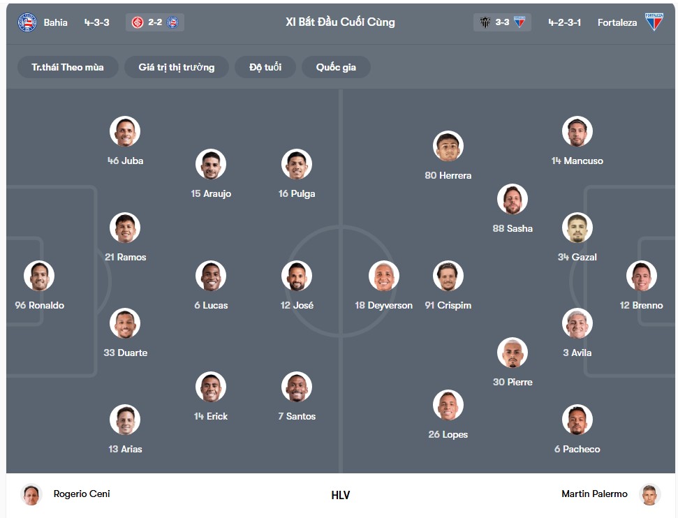 Bahia là đội bóng điển hình cho lối chơi “lấy công bù thủ” bởi hiệu số bàn thắng bại của họ chỉ là +3, thấp nhất trong nhóm sáu đội dẫn đầu bảng. Đáng chú ý, năm trong bảy trận gần đây của Bahia khép lại với từ ba bàn trở lên, điều này cho thấy các trận đấu của họ thường rất sôi động. Về phía Fortaleza, họ sở hữu hàng công tốt nhất trong nhóm đội cầm đèn đỏ và chỉ tịt ngòi trong một trên mười trận sân khách gần nhất thuộc giải vô địch quốc gia, vì vậy cuộc đối đầu sắp tới có thể sẽ chứng kiến nhiều bàn thắng. Những dữ liệu về kèo đấu cũng cho thấy Bahia đang chiếm ưu thế khi họ đã thắng châu Á trong cả 3 trận gần nhất tiếp đón Fortaleza, đồng thời cũng thắng 4 trong 6 trận gần nhất theo tỷ lệ.