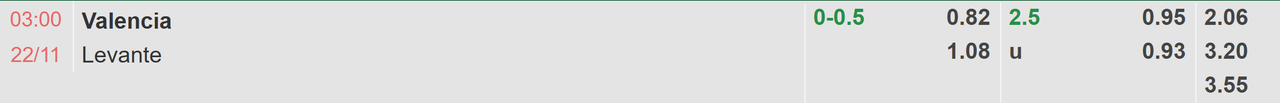 Lợi thế sân bãi đã giúp Valencia được đánh giá cao hơn trên sàn giao dịch và tỉ lệ kèo chấp chỉ 0.25 FT có thể coi là mức thuận lợi cho nhà đầu tư tin tưởng đội chủ nhà. Thực tế CLB chủ sân Mestalla còn chiếm ưu thế trong lịch sử đối đầu, khi họ chỉ có 1 lần gục ngã duy nhất trước Levante trong 10 cuộc so tài gần nhất, thống kê này đã đủ để Valencia được đánh giá cao hơn trong lần ra sân sắp tới. Tỉ lệ tài xỉu của cặp đấu chỉ dừng ở 2.5 FT nhưng 2 trận sân khách mới nhất của Levante đều kết thúc với nhiều bàn thắng, có tổng cộng 11 bàn thắng xuất hiện chỉ trong 2 trận đấu này. Cửa tài cũng trở thành lựa chọn đáng tin cậy khi bối cảnh của trận đấu diễn ra là cả Valencia và Levante đều đang nằm trong khu vực cuối bảng xếp hạng La Liga và 3 điểm từ trận đấu này sẽ giúp họ thoát khỏi khu vực nguy hiểm.