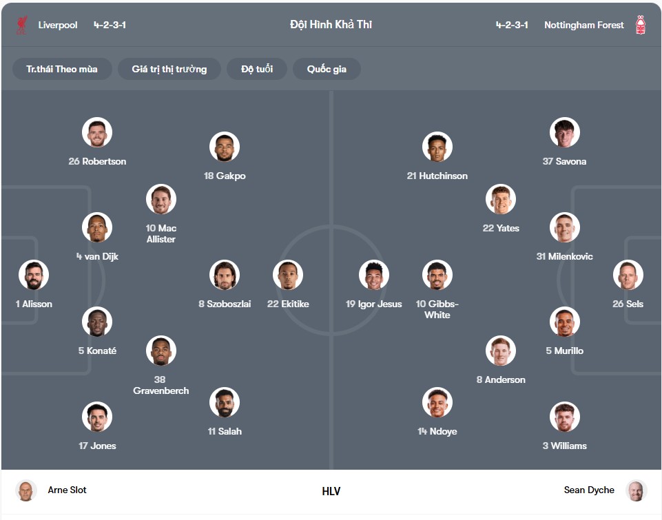 Liverpool tưởng như đã trở lại quỹ đạo chiến thắng khi hạ gục Aston Villa và quật ngã Real Madrid, nhưng sự lạc quan đó nhanh chóng bị dập tắt bởi thất bại nặng nề trước Manchester City. Khoảng cách tám điểm với Arsenal, vị trí thứ tám trên bảng xếp hạng và chuỗi phong độ phập phù khiến cho những vòng đấu còn lại của năm 2025 trở nên cực kỳ quan trọng. Họ phải tận dụng tối đa từng cơ hội, đặc biệt là tại Anfield, nếu không muốn hy vọng bảo vệ chức vô địch sụp đổ ngay trước kỳ nghỉ đông. Ngay cả khi giành những chiến thắng chất lượng trước các đối thủ mạnh, Liverpool vẫn chỉ còn là cái bóng của chính mình. Họ đã bị Man City áp đảo hoàn toàn ngay trước kỳ nghỉ quốc tế, và thất bại đó ghi dấu trận thua thứ năm trong sáu trận gần nhất tại Premier League. Sự mong manh trong khâu dứt điểm và sự thiếu chắc chắn trong phòng ngự khiến họ dễ dàng sụp đổ khi phải đối đầu một đối thủ mạnh. Chính từ bối cảnh đó, trận gặp Nottingham trở thành nhiệm vụ buộc phải thắng.