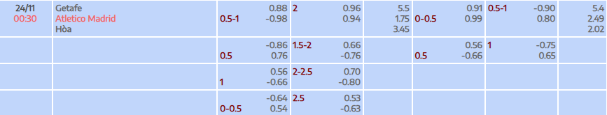 Trong 47 lần đối đầu nhau gần nhất thì Getafe chỉ có được vỏn vẹn 5 thắng lợi trong khi Atletico Madrid làm được điều này tới 31 lần, còn lại là 11 kết quả hoà. Trong 24 lần gần nhất tiếp đón Atletico Madrid trên sân nhà, Getafe cũng chỉ có được 3 thắng lợi, để hoà 7 trận và phải nhận 14 thất bại. Hơn nữa, Getafe cũng đã không thể thắng ở 3/5 trận sân nhà gần đây nhất của mình và ngoài ra thì đoàn quân của HLV Jose Bordalas cũng bị đánh giá thấp hơn về mặt đẳng cấp so với Atletico Madrid vào lúc này. Do đó, với tỷ lệ bóng đá 0,75 trái thì người chơi nên tin tưởng vào Atletico Madrid trận này.