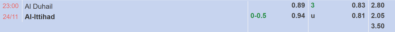 Lợi thế sân bãi không giúp Al Duhail nhận được sự tin tưởng khi tiếp đón Al Ittihad, sàn Châu Á niêm yết kèo chấp 0-0.5 FT cho các cầu thủ đội khách trong trận đấu này. Cần biết rằng, thành tích sân khách của Al Ittihad cũng rất ấn tượng với chuỗi 6 trận sân khách liên tiếp bất bại trong đó chỉ có 2 trận hòa và 4 trận còn lại toàn thắng vì vậy mà khả năng mang về lợi nhuận cho nhà đầu tư tương đối sáng sủa. Xét về khả năng ghi bàn cả Al Ittihad và Al Duhail đều cho thấy khả năng làm bàn ổn định trong thời gian gần đây, khả năng nổ tài được đánh giá cao nhất là khi lần gần nhất 2 bên đụng độ có tới 4 bàn thắng xuất hiện.