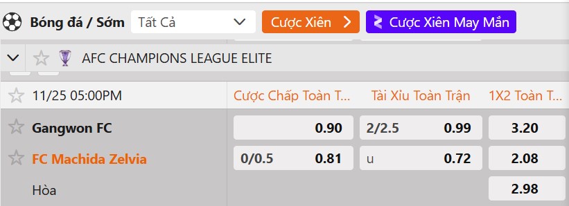 Tỷ lệ kèo Gangwon FC vs FC Machida Zelvia