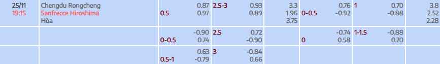 Tỷ lệ kèo AFC Champions League Chengdu Better City FC vs Sanfrecce Hiroshima