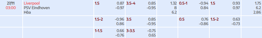 Liverpool vẫn chơi đầy kém cỏi khi mà họ đã để thua 3/5 trận gần nhất ở mọi đấu trường, nhưng điểm đáng nói là dù đang có phong độ tệ nhưng đoàn quân của HLV Arne Slot lại hạ gục được Real Madrid ở lượt đấu trước. Trong khi đó, PSV Eindhoven đã bất bại trong cả 5 trận gần nhất ở mọi đấu trường, trong đó đoàn quân của HLV Peter Bosz có được 4 thắng lợi. Trong lần gần nhất chạm trán nhau thì khá bất ngờ khi PSV Eindhoven là đội có được thắng lợi với tỉ số 3-2. Mặc dù vậy thì rõ ràng là Liverpool vẫn được đánh giá cao hơn khá nhiều về mặt đẳng cấp so với PSV Eindhoven lúc này. Do đó, với tỷ lệ cược 1,5 trái thì người chơi nên tin tưởng vào Liverpool trận này.