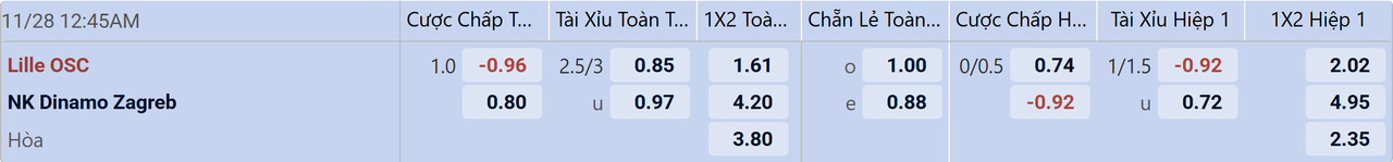 Dinamo Zagreb rất ít khi được đánh giá cao trước các câu lạc bộ thuộc 5 giải đấu hàng đầu châu Âu như Lille. Nên đại diện Croatia được chấp 1 bàn và đây cũng là bước ngoặt trên sàn giao dịch châu Á. Chó Ngao không còn là lựa chọn đáng tin cậy với những màn trình diễn lên xuống cực kỳ thất thường. Cách mà Lille gục ngã trước PAOK hay Sao Đỏ Belgrade càng củng cố cho quyết định đầu tư vào cửa dưới Dinamo Zagreb của giới mộ điệu. Sở hữu tới 4/5 lần gần nhất thua kèo Handicap, ủng hộ Lille chỉ khiến người chơi ra xa bờ. Hơn nữa, tỷ lệ ra về trắng tay của các vị khách ở Europa League mùa này cũng chỉ gói gọn 25% với 1/4 vòng gục ngã.