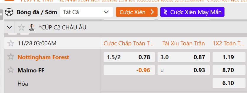 Tỷ lệ kèo Nottingham Forest vs Malmo FF