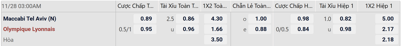 Chỉ trong quãng thời gian ngắn, lưới của các cầu thủ Maccabi Tel Aviv đã rung lên tới 8 lần sau 2 cuộc đụng độ ở cả Europa League lẫn giải quốc nội. Nên nhớ, thầy trò Zarko Lazetic đã có tới 4/5 trận đón khách gần nhất mang về niềm vui cho những ai chọn tài bàn thắng chung cuộc với tối thiểu 3 pha nổ súng từ hàng công đôi bên. Đối diện với Lyon, sự yếu kém của hàng thủ Maccabi Tel Aviv càng góp thêm phần đón nhận thất bại nặng nề ở trận đấu thứ 5 của vòng phân hạng, Europa League.