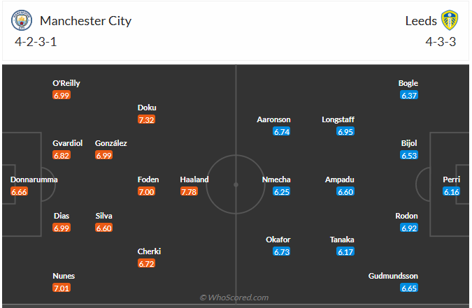 Trận thua trước Newcastle ở vòng đấu trước cũng đã phơi bày ra rất nhiều điểm yếu của MC và trong một ngày mà Erling Haaland "im hơi lặng tiếng" thì đoàn quân của HLV Pep Guardiola đã phải chịu cảnh "phơi áo" tại Sports Direct Arena. Thậm chí là khi bước ra đấu trường UEFA Champions League giữa tuần qua, HLV Pep Guardiola tiếp tục tạo ra sự "khó hiểu" khi xoay tua tới 10 vị trí trong dội hình để đối đầu với Bayer Leverkusen và kết quả là The Citizens tiếp tục nhận thất bại với tỉ số 0-2. Vì thế mà khi đối đầu với Leeds trận này, MC rất cần có một thắng lợi để vực dậy tinh thần của toàn đội.