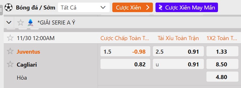 Việc Juventus vượt trội Cagliari là điều không cần bàn cãi, khi Bianconeri thắng 8 trong 9 lần gần nhất tiếp đón đội bóng này tại Turin. Lực lượng của Juventus cũng dần ổn định hơn khi Bremer nhiều khả năng sẽ trở lại trong thời gian ngắn. Dù Rugani, Pinsoglio và Milik vẫn chưa thể thi đấu, đội chủ nhà nhìn chung vẫn có đủ nguồn lực để xoay tua đội hình. Trong khi đó, Cagliari thiếu vắng Ciocci, Belotti, Ze Pedro và Mazzitelli vì chấn thương, khiến sức mạnh vốn dĩ đã hạn chế nay càng trở nên mong manh hơn. Mặc dù Juventus vừa thắng Bodo Glimt, màn trình diễn của họ vẫn chưa đủ để giới chuyên môn đánh giá quá cao. Ngược lại, Cagliari lại là đội có thành tích theo châu Á ấn tượng khi thắng 5 trong 6 trận sân khách gần nhất. Tuy nhiên, lịch sử đối đầu ở Turin lại cho thấy Juventus gần như luôn vượt trội khi chấp sâu.