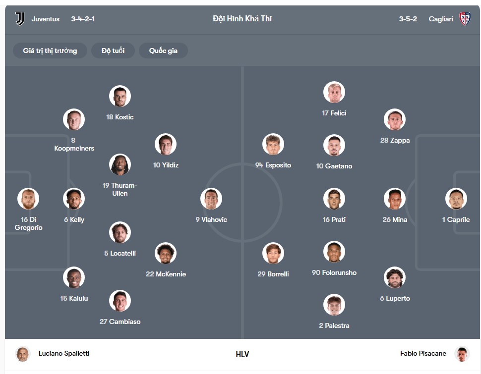 Chiến thắng đầy cảm xúc 3-2 trên sân Bodo Glimt đã cho thấy Juventus dưới thời Spalletti cuối cùng cũng bắt đầu vận hành trơn tru hơn. Hàng công của họ dường như đã tìm lại được sự kết nối, tạo nên những pha bóng mang tính tập thể mà người hâm mộ chờ đợi từ lâu. Những tín hiệu khởi sắc này khiến cuộc tiếp đón Cagliari trở thành thời điểm thích hợp để Juventus tiếp tục đà tiến, đặc biệt khi khoảng cách với nhóm dẫn đầu vẫn hoàn toàn có thể san lấp nếu họ duy trì phong độ ổn định. Cagliari với sự chỉ đạo của Fabio Pisacane trở thành đội bóng thi đấu khó lường, nhất là khi chơi xa nhà. Họ chỉ thua trên sân Napoli và Lazio, hai đội bóng mạnh hơn rất nhiều. Dẫu vậy, điều này chỉ ra chiến lược rõ ràng của Cagliari: không đặt nặng mục tiêu khi chạm trán những đối thủ hàng đầu mà tập trung vào việc tận dụng cơ hội trước các đội vừa tầm. Điều này giải thích lý do vì sao họ hiếm khi tạo bất ngờ trước những đội mạnh nhưng lại đủ sức níu điểm trước các đối thủ ngang cơ.
