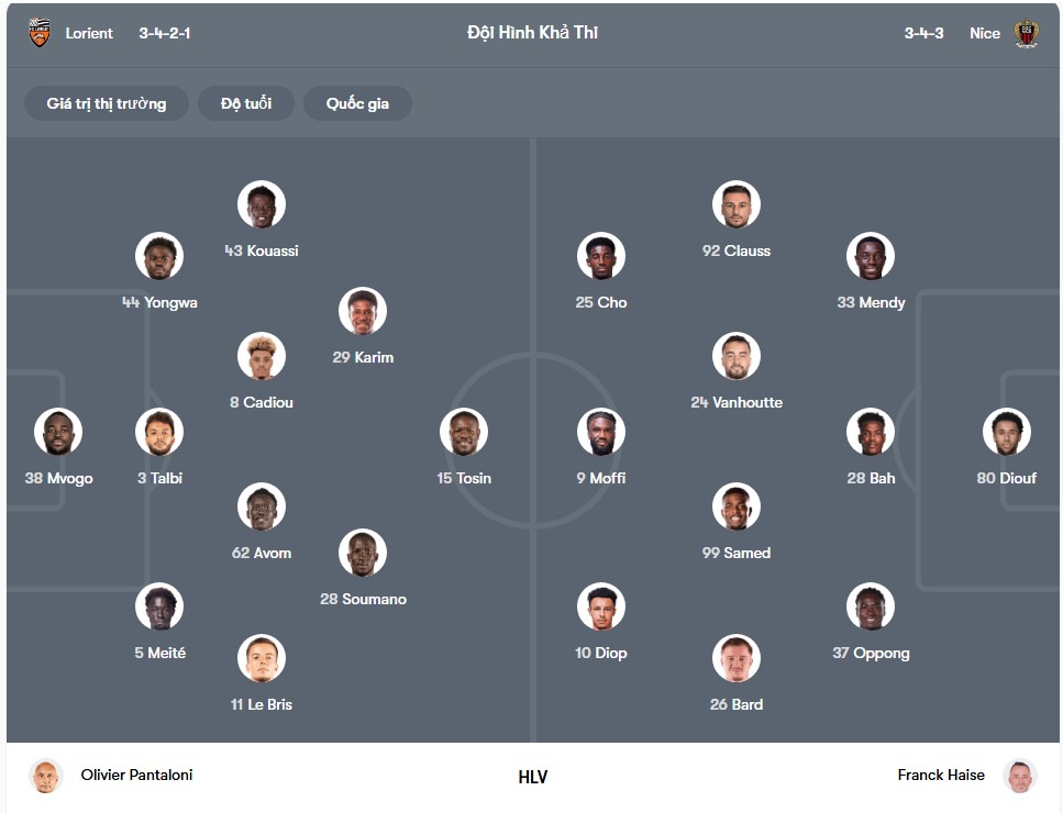 Dựa vào thống kê các kết quả thi đấu trong những lần ra sân đã qua, Nice lại đang ở trạng thái hoàn toàn trái ngược so với Lorient khi sở hữu phong độ thất thường nhưng giàu tính đột biến. Dù đội bóng thua khá nhiều (thua 6 trận trong 10 trận gần nhất), nhưng những chiến thắng trước Lille và Rennes lại cho thấy khi vào nhịp, Nice đủ sức tạo ra bất ngờ trước đội bóng mạnh hơn họ. Điểm hạn chế rõ nhất của Nice nằm ở khả năng phòng ngự. Việc để Porto ghi 3 bàn, Marseille chọc thủng lưới tới 5 bàn và Freiburg ghi tới 3 bàn cho thấy tuyến sau của họ khá mong manh. Tuy nhiên, điều tích cực là Nice hiếm khi kết thúc trận đấu với hàng công tịt ngòi quá lâu. Chỉ trong các trận gặp Porto, PSG hay Rennes họ mới ghi ít bàn hoặc không ghi bàn, còn đa phần họ vẫn tìm được đường vào lưới đối phương. Đặc biệt trong chiến thắng 3-2 trước Lyon hay 2-0 trước Lille, Nice đã cho thấy sự sắc sảo trong những thời điểm then chốt.