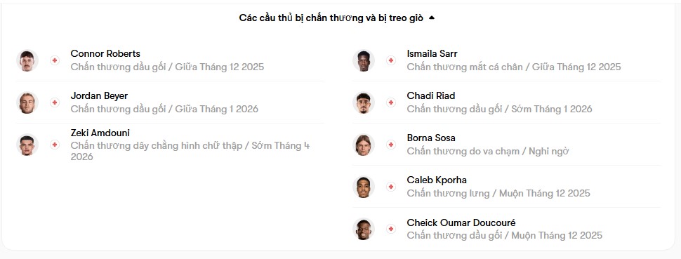 Cầu thủ để lại dấu ấn rõ rệt nhất chính là Zian Flemming. Chân sút người Hà Lan đang có mùa giải đầu tiên ở Premier League nhưng đã ghi bốn bàn sau mười trận, trở thành điểm sáng hiếm hoi trên hàng công đang vật lộn của Burnley. Tuy nhiên, một mình Flemming là không đủ để kéo Burnley ra khỏi vũng lầy khi đội bóng thường xuyên lộ rõ sự thiếu sáng tạo trong những pha tấn công cuối cùng. Ở phía bên kia sân, Crystal Palace dưới thời HLV Oliver Glasner vốn nổi tiếng là đội bóng ổn định và kỷ luật. Dù vậy, thời gian gần đây họ cũng không tránh khỏi những cú vấp khi chịu hai thất bại liên tiếp, lần lượt trước Strasbourg tại Conference League và trước Man United tại Premier League. Jean-Philippe Mateta vẫn duy trì phong độ tốt khi lạnh lùng ghi bàn từ chấm phạt đền trước MU, nhưng việc nhận hai bàn thua trong hiệp hai khiến Palace không thể nối dài chuỗi bất bại ấn tượng tại Selhurst Park, chuỗi vốn đã kéo dài đến 12 trận.
