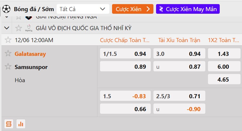 Tỷ lệ kèo Galatasaray vs Samsunspor