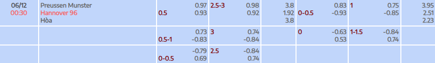 Tỷ lệ kèo Bundesliga 2 Preuben Munster vs Hannover 96