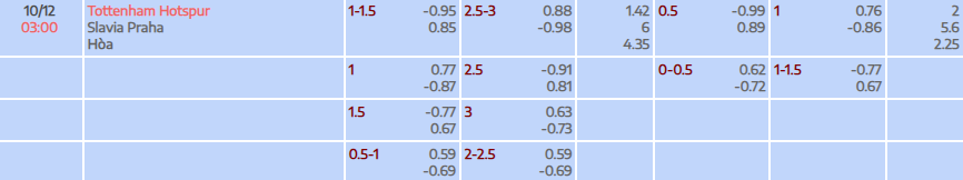 Tỷ lệ kèo UEFA Champions League Tottenham Hotspur vs Slavia Praha