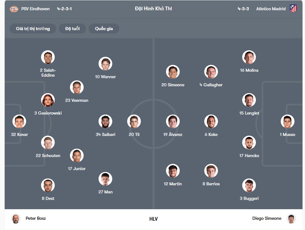 PSV bước vào trận đấu này với tinh thần rất tốt sau chiến thắng 2-0 trước SC Heerenveen tại giải quốc nội. Kết quả đó tiếp tục khẳng định sự ổn định của đội bóng, đặc biệt ở mặt trận phòng ngự. Trong sáu trận gần nhất, PSV chỉ để thủng lưới ba bàn, con số cho thấy họ đang xây dựng được một hệ thống phòng ngự kỷ luật và ngày càng hiệu quả. Tuy nhiên, việc phải đối đầu một Atletico Madrid giàu kinh nghiệm và rất giỏi khai thác sai lầm đối thủ chắc chắn sẽ là thử thách lớn hơn nhiều so với các trận đấu tại giải quốc nội. Atletico Madrid cũng không giấu quyết tâm lớn khi hành quân tới Hà Lan, nhất là sau thất bại 0-1 trước Athletic Bilbao tại La Liga. Dù kiểm soát thế trận khá tốt, đoàn quân của Simeone vẫn để lọt lưới ở thời điểm nhạy cảm và ra về tay trắng. Trận thua này được xem là cú hích để Atletico chấn chỉnh lại đội hình, siết chặt kỷ luật và tìm kiếm phản ứng tích cực ngay lập tức.