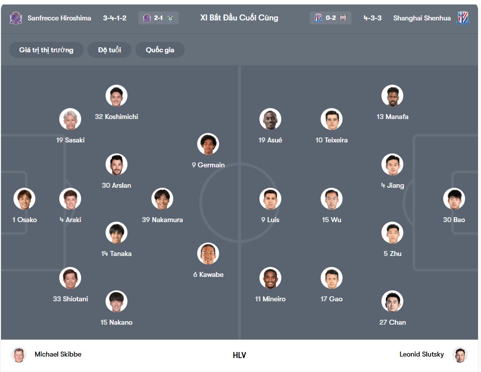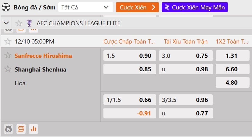 Tỷ lệ kèo Sanfrecce Hiroshima vs ShenHua Thượng Hải