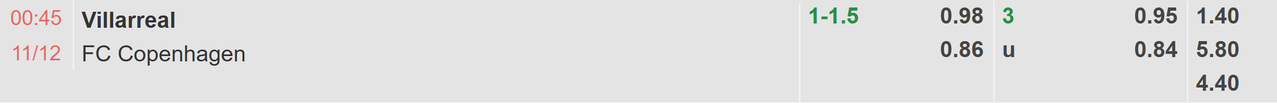 Không nên tin tưởng vào một kết quả tài bàn thắng khi các chân sút của Villarreal đang tỏ ra rất vô dụng ở sân chơi quốc tế. Tàu Ngầm Vàng mới ghi được 2 bàn ít ỏi dù đã thi đấu 5 vòng tại Champions League. Trong khi đó, Copenhagen cũng chỉ có 4 lần lập công ở 4/5 cuộc đụng độ không thắng ở cúp C1 châu Âu và 3 lần nổ súng trước đội xếp áp chót như Kairat Almaty chẳng đáng để nhà đầu tư phải bận tâm.