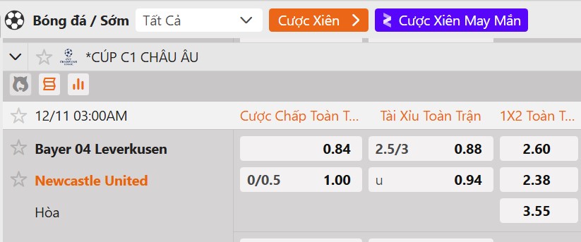 Tỷ lệ kèo Leverkusen vs Newcastle