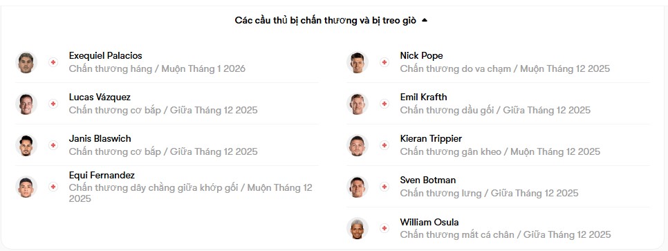 Newcastle, ở chiều ngược lại, đang thể hiện bộ mặt khá tích cực tại đấu trường châu Âu với ba chiến thắng và hai thất bại sau năm vòng đấu. Họ ghi được 11 bàn và chỉ để lọt lưới bốn lần, cho thấy sự cân bằng khá tốt giữa công và thủ. Đáng chú ý hơn, cả ba chiến thắng của đội bóng nước Anh đều đi kèm với việc giữ sạch lưới, minh chứng cho sự chắc chắn trong khâu phòng ngự. Khi đối đầu Leverkusen, Newcastle nhiều khả năng sẽ lựa chọn cách tiếp cận thiên về kiểm soát và giảm nhịp độ, hạn chế tốc độ tấn công nhanh của đội chủ nhà. Lối chơi phòng ngự phản công cùng nền tảng thể lực mạnh mẽ nơi hàng tiền vệ giúp họ sẵn sàng tranh chấp quyết liệt, phá vỡ các mối liên kết mà Leverkusen tạo ra.