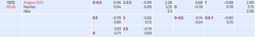 Màn trình diễn ở giai đoạn vừa qua của Angers SCO là khá ổn định khi mà đội bóng này có được cho mình thắng lợi ở 3/5 trận gần nhất. Hơn nữa, đoàn quân của HLV Alexandre Dujeux cũng đã bất bại ở 3/5 trận sân nhà gần nhất. Trong khi đó, FC Nantes thể hiện sự kém cỏi khi mà đã không thắng ở 9/10 vòng đấu gần nhất tại Ligue 1. Trong 5 lần gần nhất đối đầu nhau giữa hai đội thì sự cân bằng đang được thể hiện khi mỗi đội đều có được 2 thắng lợi, còn lại là 1 kết quả hoà. Tuy nhiên theo phong độ hiện tại, với tỷ lệ cá cược 0,25 trái thì người chơi nên tin tưởng vào Angers SCO trận này.