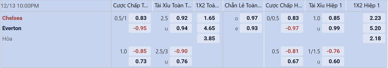 Dù đã chơi bóng khởi sắc trong thời gian qua, nhưng Everton vốn dĩ luôn gặp nhiều trở ngại mỗi lần đối mặt trước hàng phòng ngự của Chelsea. Mùa trước, Kẹo Bơ từng im hơi lặng tiếng suốt 2 trận lượt đi và lượt về. Bên cạnh đó, The Blues cũng chỉ có 1 lần duy nhất điền tên mình lên bảng điện tử, nên lựa chọn xỉu càng có thêm trọng lượng ở cuộc tái đấu tại Stamford Bridge. Trong chuỗi 4 trận không thắng liên tiếp của thầy trò Enzo Maresca, Chelsea chưa từng ăn mừng 2 lần trong 1 trận. Mức kèo 2.5 FT của nhà cái chỉ phù hợp để xỉu lên ngôi ở màn đụng độ giữa Chelsea vs Everton.