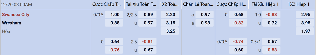 Swansea được đánh giá cao hơn với tỷ lệ cược chấp 0.25 FT nhờ ưu thế địa lợi và cộng thêm cả phong độ sa sút của Wrexham. Tuy hai câu lạc bộ có ít cơ hội gặp nhau tại Hạng Nhất Anh vì Wrexham sắm vai tân binh mùa này, nên lần gặp nhau gần nhất đã cách đây tận 2 thập kỷ. Trong đó, Swansea City giành chiến 2 chiến thắng liên tiếp và phô diễn sức mạnh vượt trội. Nhìn vào những màn trình diễn yếu kém của thầy trò Phil Parkinson hiện tại, đầu tư vào Wrexham rất khó sinh lời dù họ nằm cửa dưới. Bởi lẽ, họ đã rời xa chiến thắng trong 7 lần làm khách liên tiếp và trận đấu gần nhất mà Wrexham chạm tay vào 3 điểm diễn ra ở cuối tháng 9. Ngược lại, Swansea City tự tạo ra lối thoát ở nhóm cầm đèn đỏ bằng cách nhân đôi niềm vui với 2 thắng lợi gần đây tại tổ ấm. Do đó, ủng hộ Thiên Nga mang về nhiều cơ hội thắng kèo châu Á hơn Wrexham toàn hoà lẫn thua trong quãng thời gian dài.
