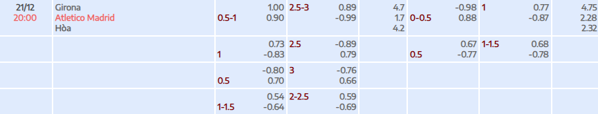 Tỷ lệ kèo La Liga Girona vs Atletico de Madrid