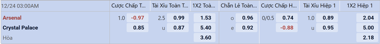 Khi Crystal Palace đã nhận ra sự yếu ớt của bản thân, họ sẽ chơi phòng ngự kín kẽ hơn bởi đối thủ của Đại Bàng không phải là một tân binh như Leeds mà là ứng cử viên vô địch Arsenal. Thêm nữa, Pháo Thủ không phải lúc nào cũng sở hữu hiệu suất ghi bàn ấn tượng. Đoàn quân của HLV Mikel Arteta chỉ có 1/6 trận gần đây nổ súng nhiều hơn 2 bàn trong 90 phút bóng lăn. Ngay ở màn đụng độ mới nhất giữa Arsenal vs Crystal Palace, Pháo Thủ cũng chỉ thắng tối thiểu 1-0. Cho nên, xỉu sẽ đưa các nhà đầu tư về bờ khi tỷ lệ 2.5 FT được nhà cái ấn định.