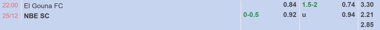 Cả hai bên đều có hiệu suất ghi bàn trung bình từ 2 lần lập công trở lên với 5 bàn thắng của El Gounah sau 2 vòng và National Bank of Egypt ghi nhận 7 lần nổ súng. Thế nên một kịch bản nổ tài được chuyên gia đánh giá rất cao khi tỉ lệ được niêm yết là 1.75 FT vì hai màn đọ sức gần nhất trong năm nay của cầu thủ đôi bên cũng có tối thiểu 3 lần rung lưới. Đáng chú ý nhất vẫn là hàng công mạnh mẽ của National Bank of Egypt, bởi chuyến làm khách mới đây của thầy trò Ayman Al Ramadi đã khép lại với tổng 7 pha lập công.