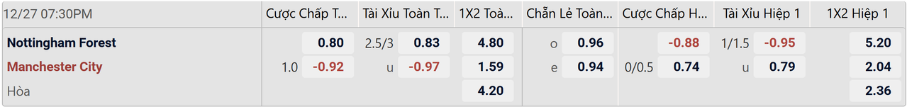 Phong độ chói sáng của Man City đang làm lu mờ chủ nhà Nottingham ở vòng 18, Ngoại Hạng Anh. The Tricky Trees không sở hữu bất cứ ưu thế nào ngoài việc được thi đấu trên sân nhà City Ground. Sự đối lập được thể hiện rõ ràng nhất khi người chơi đề cập tới lịch sử đối đầu của hai đội bóng. Đúng là Nottingham vẫn có khả năng gây bất ngờ, ví dụ nhưng thắng lợi trước Man City vào lượt về mùa trước. Nhưng đây cũng là lần duy nhất thầy trò Sean Dyche vượt qua được nửa xanh thành Manchester trong hơn 15 năm qua. Cụ thể, Man City thắng tới 5/7 trận gần nhất tính từ mùa giải 2022/23 mà Nottingham giành quyền thăng hạng. Tỷ lệ cá cược chấp 1.0 FT không gây khó dễ cho Man City với kịch bản đánh bại chủ nhà cách biệt tối thiểu 2 bàn.