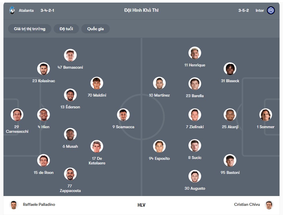 Atalanta bước vào trận đấu với sự tự tin nhất định sau chiến thắng tối thiểu 1-0 trước Genoa. Ở trận đấu đó, họ hoàn toàn làm chủ thế trận với tỷ lệ kiểm soát bóng lên tới 71%, tung ra 16 cú dứt điểm, và chỉ có được bàn thắng quyết định ở phút bù giờ do công của Isak Hien. Đáng chú ý, Atalanta đang duy trì hiệu suất ghi bàn ổn định khi nổ súng trong cả 6 trận gần nhất, ghi tổng cộng 12 bàn và chỉ để thủng lưới 5 lần. Trên sân nhà, họ cũng đang bất bại trong 2 trận Serie A gần đây. Tuy nhiên, vấn đề lớn nhất của Atalanta vẫn nằm ở chính đối thủ. La Dea đã không thể đánh bại Inter trong 13 lần chạm trán gần nhất tại Serie A – một chuỗi thành tích đáng lo ngại và tạo ra áp lực tâm lý rất lớn trước cuộc đối đầu này.