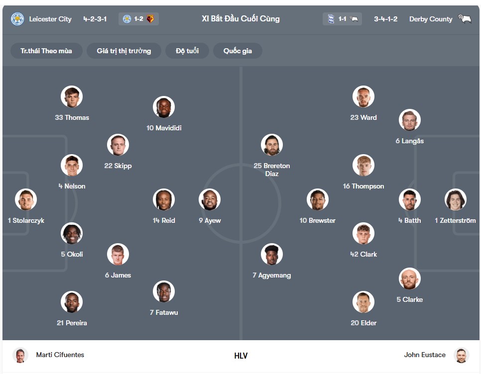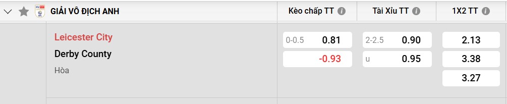 Tỷ lệ kèo Leicester vs Derby County