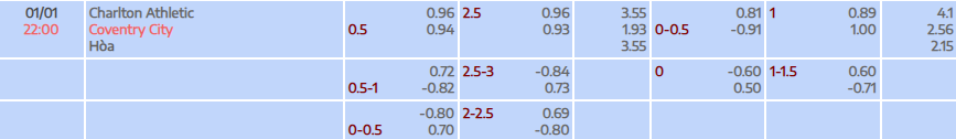 Tỷ lệ kèo Championship Charlton vs Coventry