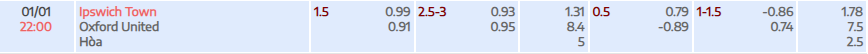 Tỷ lệ kèo Championship Ipswich vs Oxford