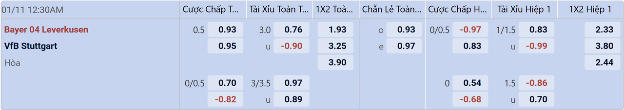 Leverkusen vẫn là một bài toán khó giải của các cầu thủ Stuttgart. Kết quả chỉ hoà và thua chủ sân Bay Arena của Thiên Nga Trắng đã tồn tại trong 7 năm trở lại đây với 15 trận không thể ca khúc khải hoàn. Tiếp tục gặp nhau ở vòng 16, Bundesliga 2025/26 càng khiến thầy trò Sebastian Hoeness nhận thêm áp lực trong bối cảnh cần điểm để duy trì vị thế trong top 6. Người chơi không nên để các kết quả tốt của Stuttgart ở các giải đấu nằm ngoài khuôn khổ VĐQG Đức làm cho phân tâm. Thiên Nga Trắng chỉ có 2/7 trận vượt ải handicap thành công tại Bundesliga gần đây và không phải lựa chọn sáng giá khi Leverkusen đang thi đấu đầy ấn tượng. Chuỗi 4 trận thắng kèo châu Á liên tiếp và 9/11 lần đưa người chơi về bờ thành công ở mọi đấu trường của thầy trò Kasper Hjulmand chính là lý do nhà đầu tư nên ủng hộ chủ nhà thông qua cửa trên chấp 0.5 FT.