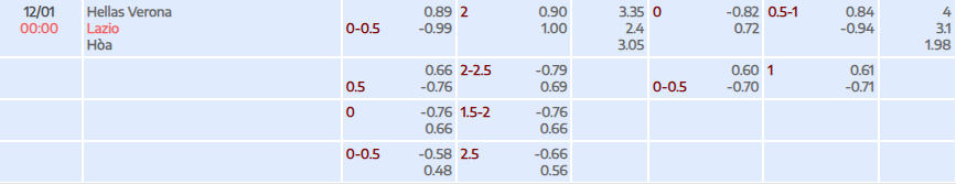 Tỷ lệ kèo Serie A Verona vs Lazio