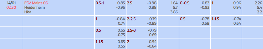 Tỷ lệ kèo Bundesliga Mainz vs Heidenheim