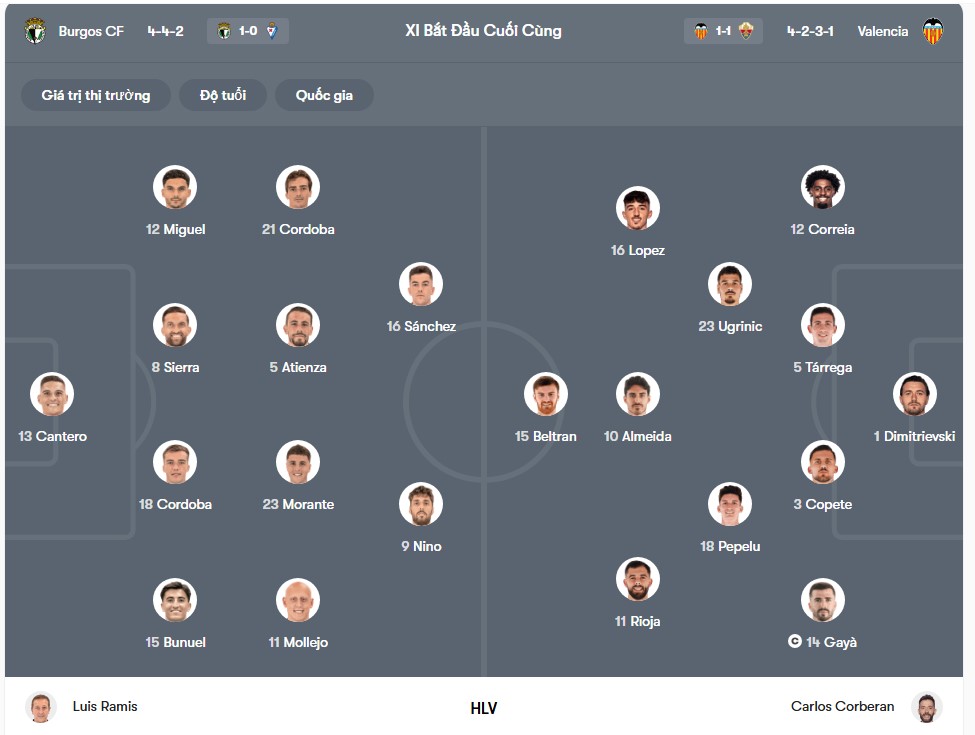Dẫu vậy, trái ngược với bộ mặt phập phù tại La Liga, hành trình của Valencia ở Cúp Nhà Vua mùa này lại diễn ra tương đối suôn sẻ. Họ lần lượt vượt qua Cartagena, Maracena và đánh bại Sporting Gijón với tỷ số 2-0 vào giữa tháng 12. Tuy nhiên, nếu chỉ xét trong khuôn khổ 90 phút thi đấu chính thức, đó cũng mới là chiến thắng duy nhất của Valencia trong tám trận gần đây trên mọi đấu trường. Điều này cho thấy khả năng tận dụng cơ hội và kết liễu đối thủ vẫn là bài toán chưa có lời giải đối với thầy trò Carlos Corberán. Những năm gần đây, Valencia không còn giữ được vị thế đáng gờm tại La Liga như trong quá khứ. Dẫu vậy, ở sân chơi Cúp Nhà Vua, họ vẫn duy trì được thành tích tương đối ổn định. Trong tám mùa giải gần nhất, có tới sáu lần Valencia ít nhất cũng lọt vào tứ kết. Hai mùa còn lại, họ chỉ dừng bước ở vòng 1/8 và đều là những thất bại trước các đối thủ cùng thi đấu tại La Liga. Chính vì thế, dù đang gặp nhiều vấn đề ở giải quốc nội và phải vật lộn trong cuộc đua trụ hạng, cơ hội tiến sâu tại Copa del Rey của Valencia vẫn được đánh giá khá sáng sủa, nhất là khi đối thủ chỉ là một đội bóng hạng Hai như Burgos.
