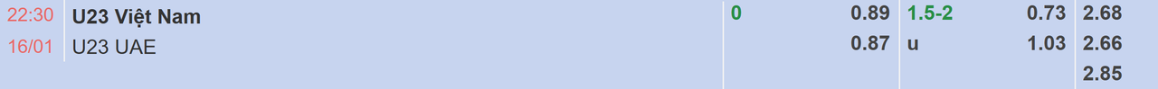 Vì mới để thủng lưới 1 bàn duy nhất ở VCK U23 châu Á năm nay, hệ thống phòng ngự chặt chẽ của U23 Việt Nam là nguyên nhân cửa tài không có đất diễn trước mức kèo 1.75 FT. Rõ ràng, thầy trò Kim Sang Sik có nhiều khả năng tái hiện kịch bản thắng 1-0 U23 Ả Rập Saudi trước U23 UAE. Xỉu là lựa chọn hợp lý vì ngay cả hiệu suất lập công của đại diện châu Á cũng chỉ giới hạn ở mức 1 bàn/trận với tổng 3 lần nổ súng sau 3 lần ra sân.