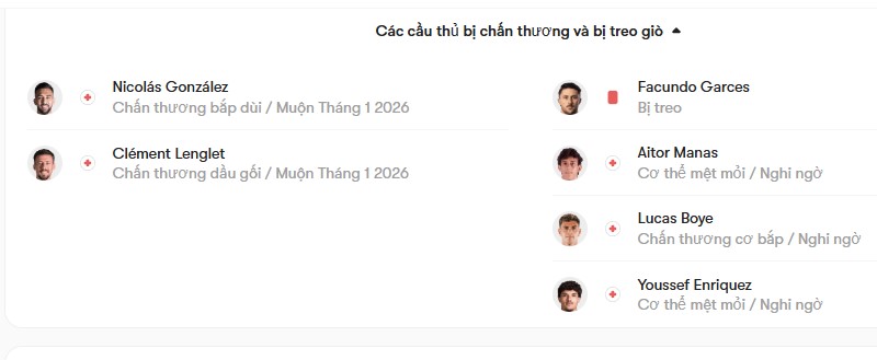 Xét về thành tích đối đầu trong quá khứ, Alaves tỏ ra lép vế khi chỉ giành được 9 chiến thắng trong tổng số 34 lần chạm trán Atletico Madrid trên mọi đấu trường. Dẫu vậy, trong những lần gặp nhau gần đây, Alaves lại thể hiện sự khó chịu nhất định. Cụ thể, họ chỉ thua 1 trong 4 lần đối đầu gần nhất với Atletico, và đáng chú ý là cả hai lượt trận La Liga mùa trước giữa hai đội đều kết thúc với tỷ số hòa. Tại bảng xếp hạng La Liga mùa giải 2025/26, Atletico Madrid hiện đang đứng ở vị trí thứ 4 với 38 điểm. Họ chỉ kém đội xếp thứ 3 là Villarreal 3 điểm, nhưng lại thi đấu nhiều hơn đối thủ 1 trận. Chính vì vậy, trong thời gian chờ Villarreal hoàn thành đủ số trận đã bị hoãn, Atletico buộc phải giành chiến thắng ở những vòng đấu này để tích lũy điểm số, tạo áp lực và thậm chí chiếm lấy vị trí của đối thủ.
